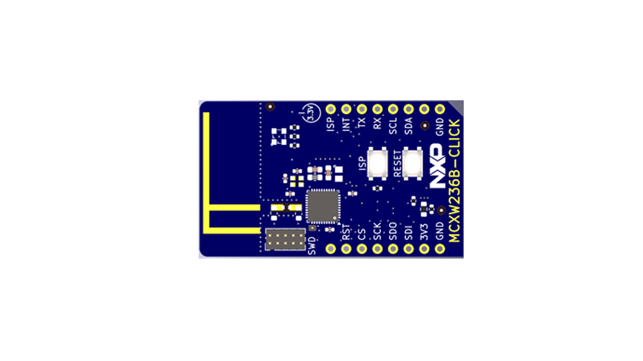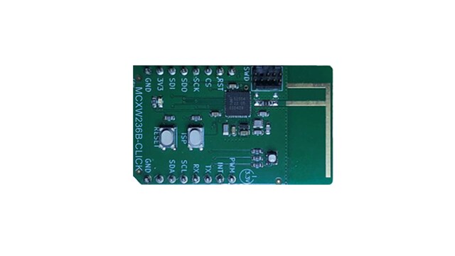 The MCXW236B-CLICK is an add-on board that enriches NXP’s expansion board hub with a Bluetooth LE Click board that enable connectivity to a wide range of MCU and MPU FRDM boards. This board features the MCX W23 Bluetooth® Low Energy (LE) 5.3 wireless microcontroller unit (MCU) and once connected to the existing FRDM boards, it offers easy evaluation and rapid prototyping of the MCX W23 wireless MCU. Connecting this board with FRDM MCXC or MCXN can also provide a medium to further explore the ADC/DAC capabilities.